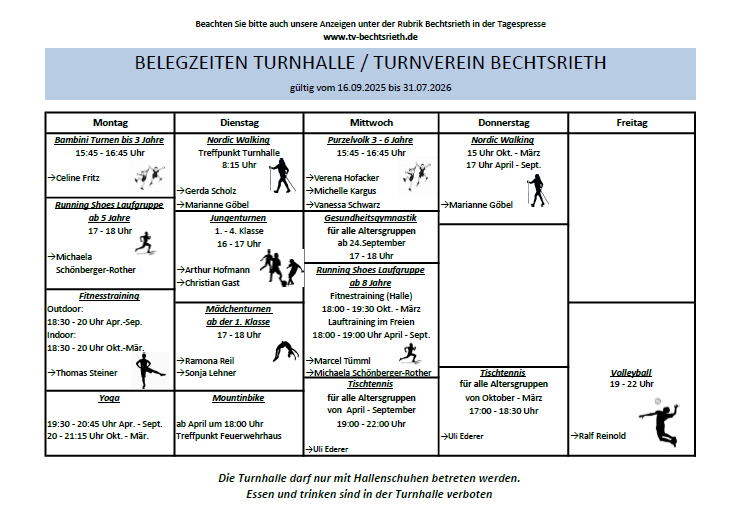 Bambinis: Das Bambiniturnen findet unter der Leitung von Astrid Fischer wieder jeweils am Montag von 16 - 17 Uhr statt. Zusätzliche Mamas oder Papas sind zum auf- und abbauen gerne willkommen. mehr erfahren